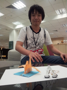 Through my earlier email correspondences with Ken, Ken had shared that as a kid, he liked to dismantle things like radio sets, lamps, toys and re-assemble them together, build models and customise Tamiya racing cars. Ken gave credit to his father for cultivating his interest in DIY, by being a role model for him. Currently, Ken is a fourth year PhD student at the National University of Singapore and the “dancing paper-craft” is his research project this year. Ken enjoys working on exciting and crazy scientific ideas. As he enjoys building paper models and folding origami, he decided to incorporate them into his PhD research topic and try to make them move by itself like robots.